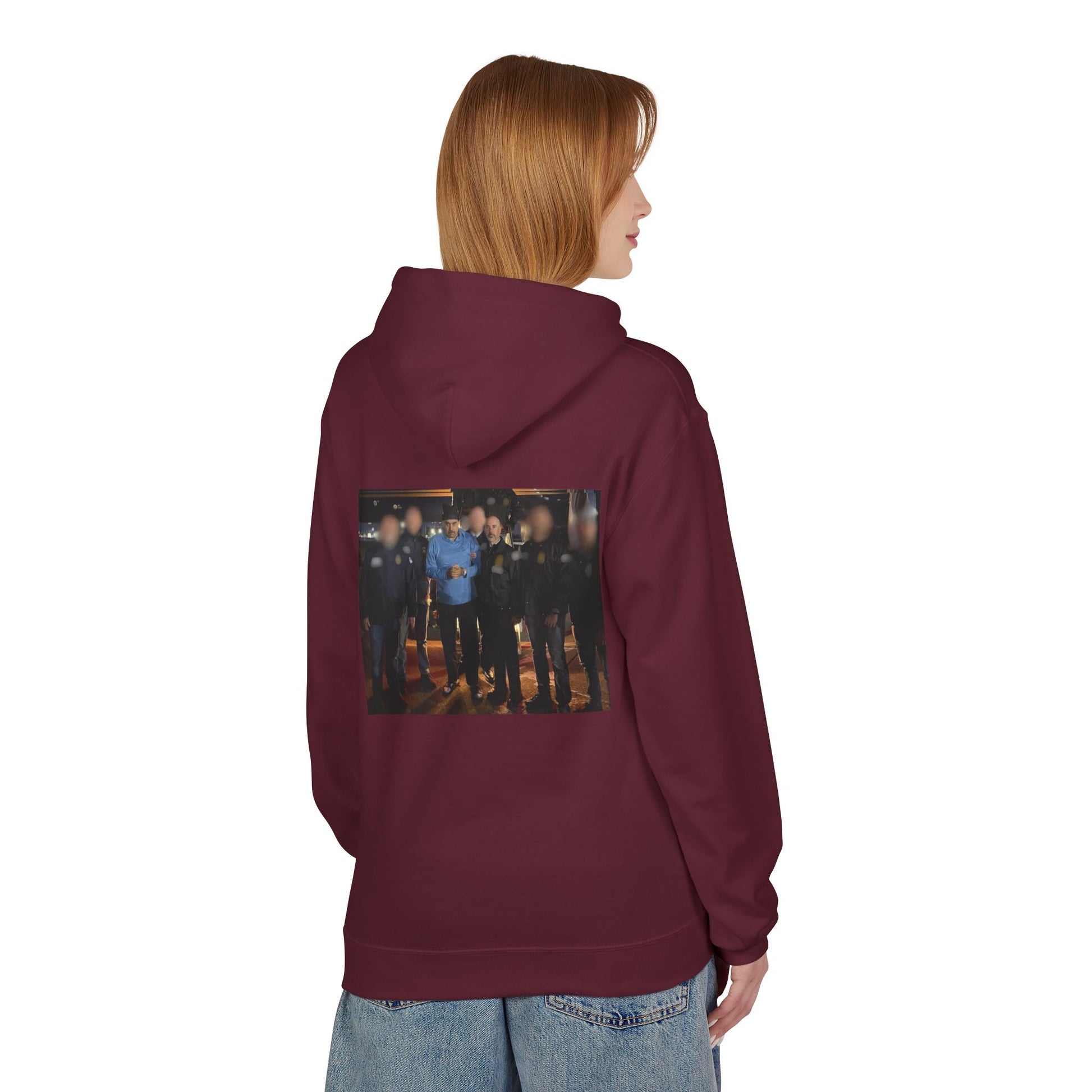 This hoodie carries a lived-in, late-night energy — the soft midweight fleece drapes like a memory you return to. The front shows a candid, framed moment; the back expands that story into a wider scene, like catching up with friends after the noise has faded. It feels warm at the edges and honest in the center: the kind of layer you reach for when you want comfort without pretending. Wear it on chilly walks, low-key meetups, or when you need a quiet reminder of nights that mattered.